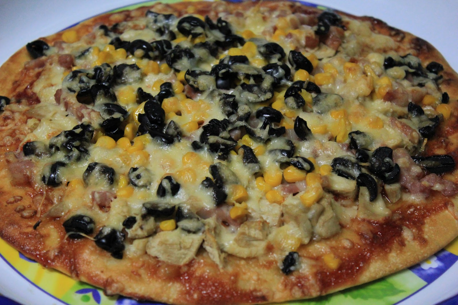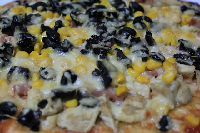 A tua pizza está excelente, com umas cores lindas e alegres, muito convidativa ! :)