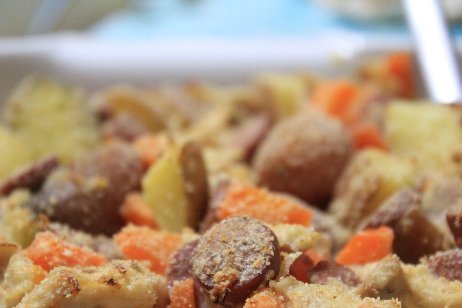 Coloque um pouco de pão ralado por cima do preparado e leve ao lume a 150/180ºc por cerca de 30 minutos ou até o pão começar a tostar.