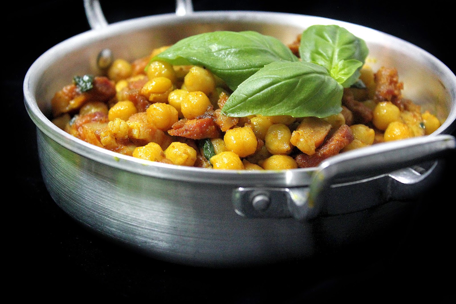 Adoro grão e tudo o que lhe juntaste à excepção do bacon, mas o chouriço para mim já me satisfaz! :)